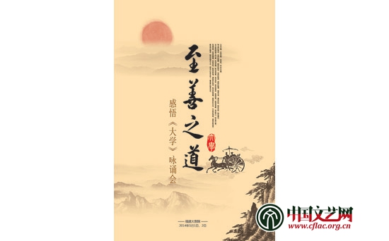2014年5月推出的“至善之道——感悟《大学》咏诵会”,深入挖掘《大学》“三纲八目”所追求的“止于至善”来展开,紧扣现代人的心理需求,讴歌了先人“修身齐家治国平天下”的理想追求。作品中的《雨伞情》这首歌曲,借用雨伞这个具象警示为官者:“开如轮,撑起一片爱心护人行;合如柄,恰似一根权杖握手中。晴有爱,阴有情,雨伞真是好德行。情浓浓,意浓浓,生来就为别人擎。人生你要握权柄,做把雨伞护人行。”