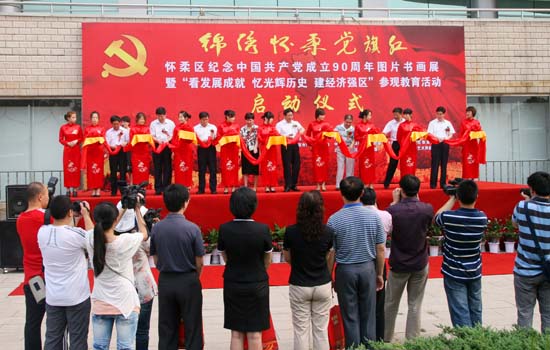 为纪念建党九十周年,进一步激发全区广大党员干部群众对党的无比忠诚和热爱之情,坚定全区人民永远跟党走的信念,6月28日,由中共怀柔区委主办,区委组织部、宣传部、区文联、区档案局共同承办的《锦绣怀柔党旗红——图片书画展》暨“看发展成就 忆光辉历史 建经济强区”参观教育活动启动。区领导王海平、齐静、吴德增、武占刚、萧有茂、王红兵、彭丽霞、焦振华、周东金出席并为活动剪彩。