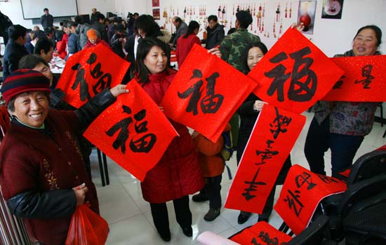 在4个多小时里,书法家们书写春联300余幅,受到群众的欢迎。