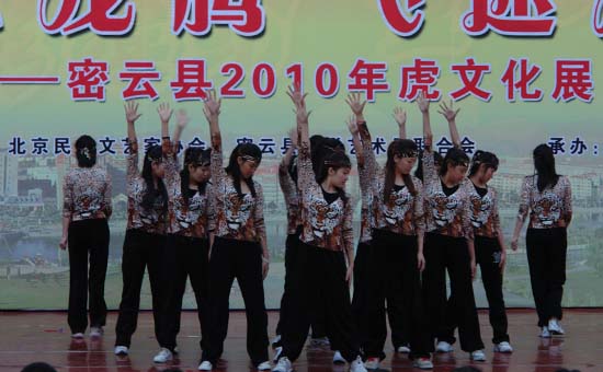 2010年11月21日,“虎跃龙腾、飞速发展”2010年密云县虎文化展在密云青少年宫隆重开幕。展览通过展板文字图片、工艺品实物和文艺节目三种形式展现了密云的虎文化元素。展线长达120米,内容丰富、底蕴深厚、作品精道,深深吸引了广大观众。在密云散见的虎文化元素很多,如:密云民间古建的虎头瓦当;老县城小南门的“倒吊一只虎”,曹家路独特的“五虎水门关”;石塘路独树一帜的花会“牛虎斗”,还有剪纸、绘画和绣品等充分展示了密云虎文化的悠久历史。