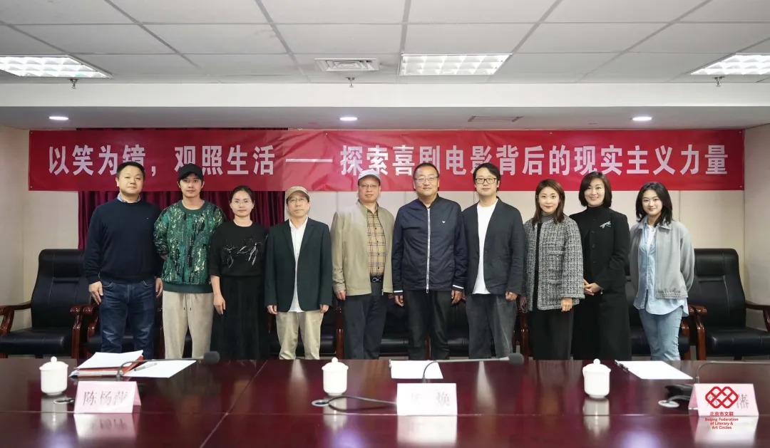 10月30日,由北京电影家协会主办的“以笑为镜,观照生活——探索喜剧电影背后的现实主义力量”研讨会在北京市文联召开。中国艺术研究院研究员刘藩,喜剧导演、编剧束焕、董润年,开心麻花签约导演、演员吴昱翰,北京新影联影业有限责任公司副总经理方铭,腾讯视频自制电影制片人姚玲,北京师范大学教授、影视策划人尹成奎参加研讨交流。北京影协驻会副主席、秘书长陈杨萍主持会议。